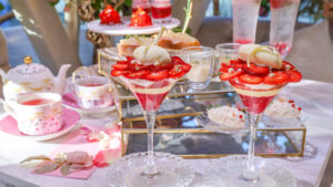 ストロベリーミルフィーユパルフェを中心に5種類のベリースイーツを提供されます。絵になるインスタ映えスイーツは見た目はもちろんですが、味も美味しいのでオススメです。